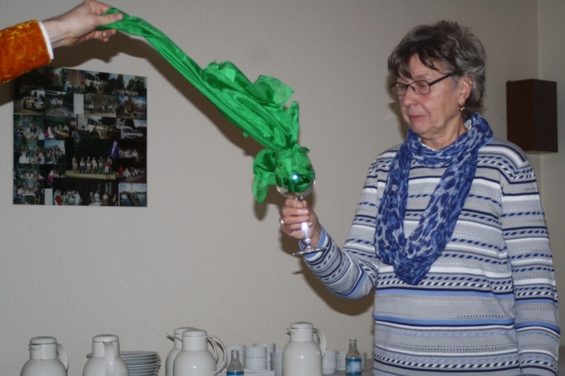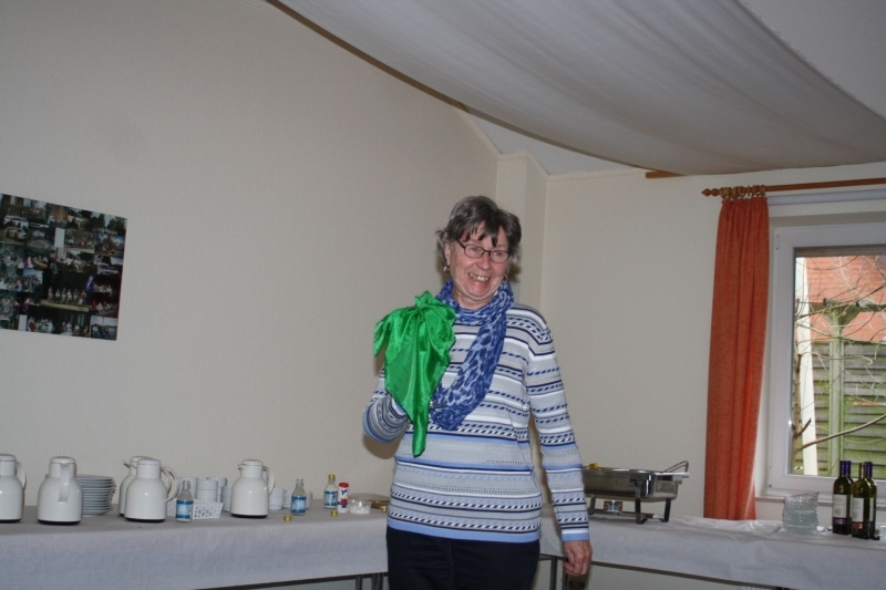 Sonja Heggblum wurde vom Vorstand im Beisein von Helferinnen und Helfern, Nachbarn und Freunden während einer angemessenen Veranstaltung in den wohlverdienten Ruhestand entlassen. Das langjährige Mitglied im aktiven Dienst, Jörn Heggblum, ließ noch einmal die vielen Jahre Revue passieren. In seine Würdigung bezog er auch Trutz Heggblum mit ein, der an der Seite von seiner Ehefrau Sonja die Geschicke des Ortsvereins mit geprägt hat und vieles, was heute in der Feldstraße 14 vorhanden ist, durch ihn mit aufgebaut und geschaffen wurde. Und auch der Sohn der Eheleute, Helge Heggblum, ließ es sich nicht nehmen, das Wirken der Hausmeisterin und des Schatzmeisters zu würdigen. Mit humorvollen Passagen und der Überreichung eines Präsentkorbes dankte der stellvertretende Vorsitzende Karl-Heinz Tapken für die geleistete Arbeit und meinte, „da ihr ja jetzt einen neuen Lebensabschnitt in der ehemaligen DDR beginnt, bekommt ihr ja vielleicht Begrüßungsgeld vom Bürgermeister, wenn ihr mal zu Besuch kommt.“ Standingovatioins mit langanhaltendem Beifall rundeten die Dankesworte ab. Der allgemeine Tenor der Anwesenden war dann auch „schade, dass ihr geht; wie wird es denn nun weitergehen; ihr seid immer herzlich willkommen“ und noch viele guten Wünsche mehr. Sonja und Trutz Heggblum betonten in ihren Dankesworten, dass sie die Arbeit gern gemacht haben, wenn auch nicht immer eitel Sonnenschein war. Es waren schon teilweise heftige Angriffe von Außen zu bewältigen. „Aber als Team haben mein Mann und ich die Probleme gelöst und so dem Roten Kreuz dienen können“ sagte Sonja Heggblum. „Wir wünschen dem Roten Kreuz in Quickborn für die Zukunft alles Gute und geben unseren Nachfolgern den guten Rat, dass Höflich- und Freundlichkeit immer eine gute Grundlage für das Miteinander ist.“